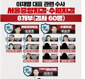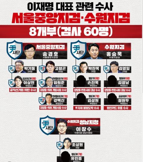 대표 검사들로는송경호 서울중앙지검장,홍승욱 수원지검장,이창수 수원지검 성남지청장을 비롯한 실명과 사진을 배포했다. 또한 일부 검사들의 이름 아래에 공직선거법 위반 수사, 대장동 개발사업 수사, 쌍방울 변호사비 대납 수사, 이재명 자제 불법도박 수사, 법인카드 유용 수사, 성남FC수사 등 담당 사건을 적시했다.